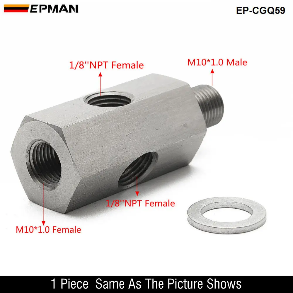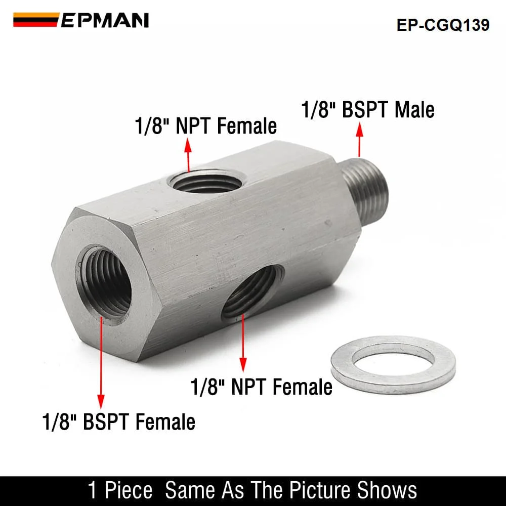 EPMAN 1/8'' NPT & 1/8" BSPT & M10 Oil Pressure Sensor Tee To NPT Adapter Turbo Supply Feed Line Gauge NPT Male Famale Joint Connector Auto Accessories