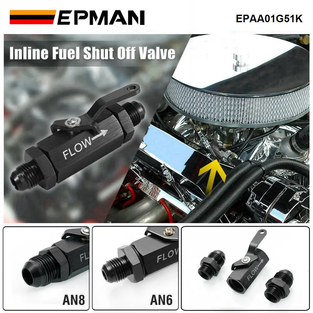 EPMAN Aluminium AN6/AN8 Inline Shut Off Valve Fuel Cut Off Switch W/ Cable Lever For Fuel Oil EPAA01G51K