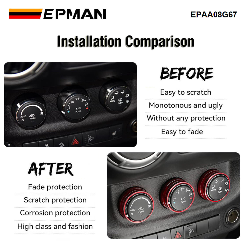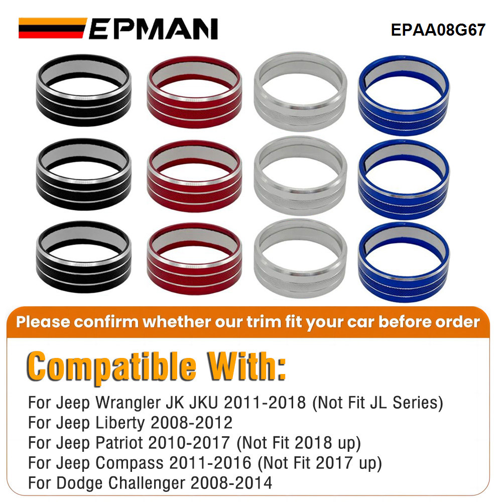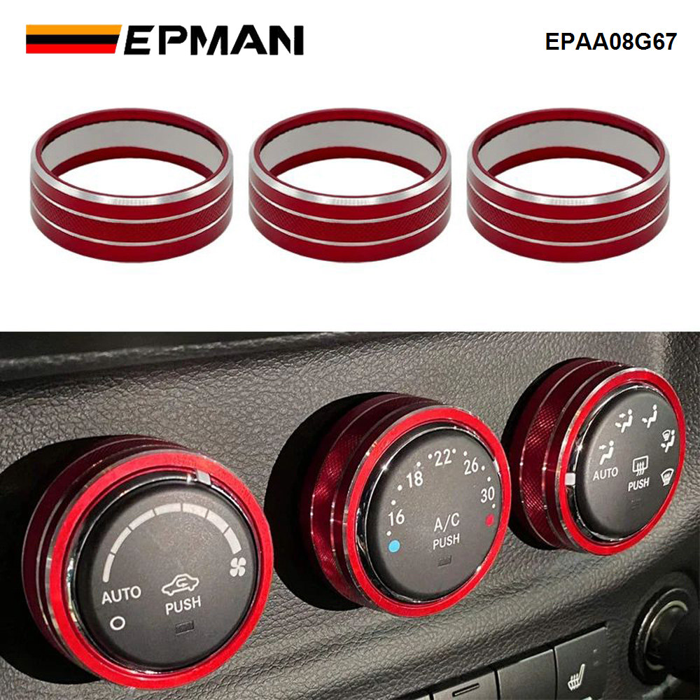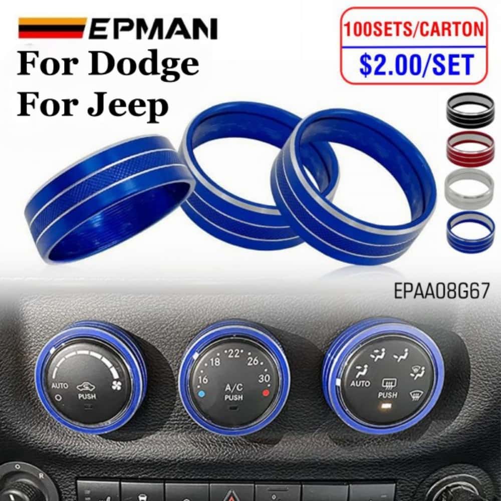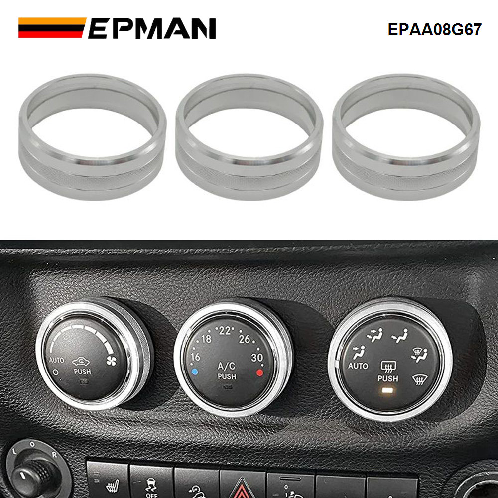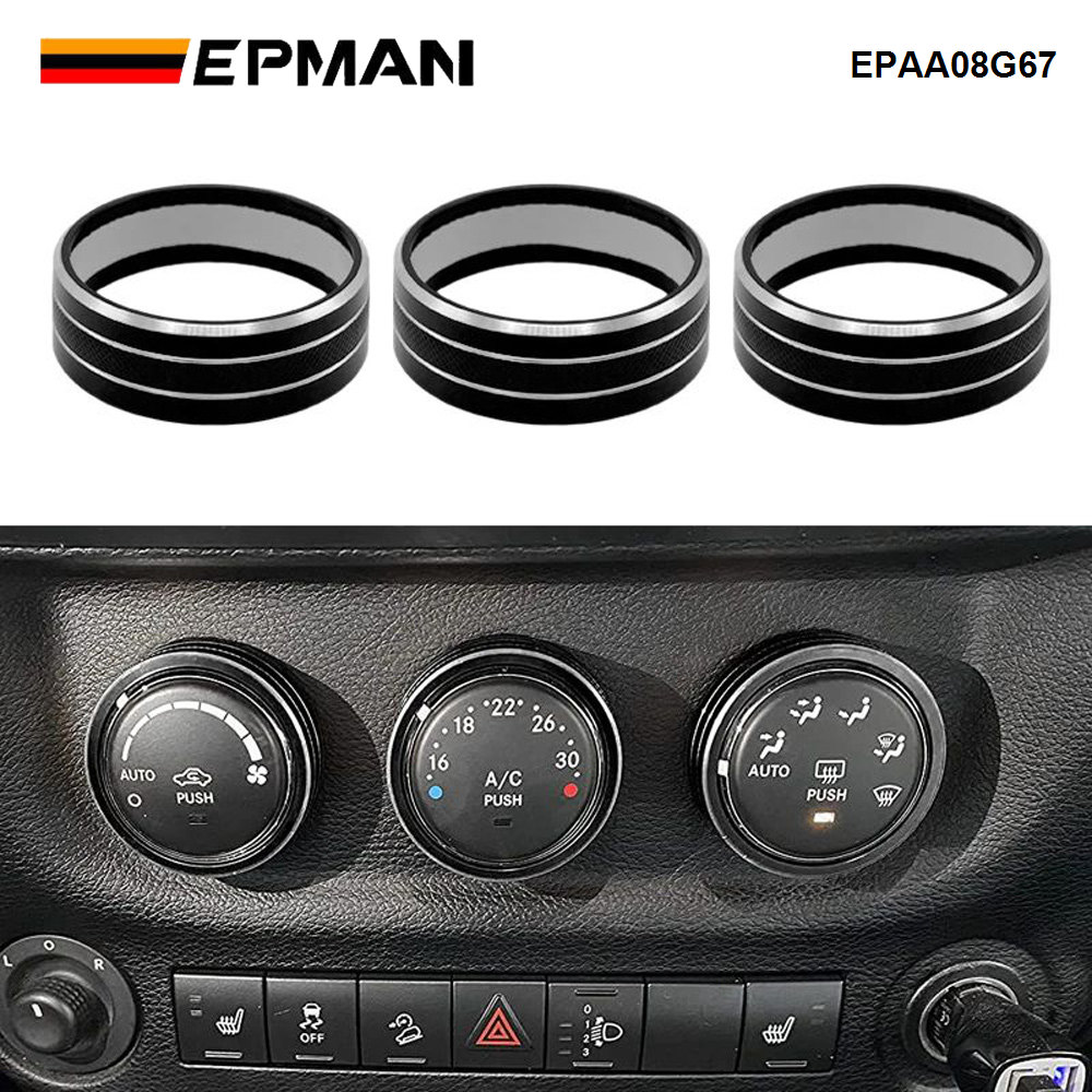 EPMAN 100SETS/CARTON 3PCS/SET Car Interior Air Conditioner Switch Knob Ring Cover Decoration Trim For Jeep Wrangler JK JKU For Liberty/Patriot/Compass/Challenger EPAA08G67-100T